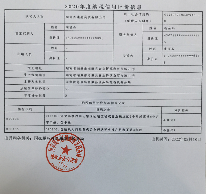 企業(yè)納稅信用等級報告: 納稅信用報告.png