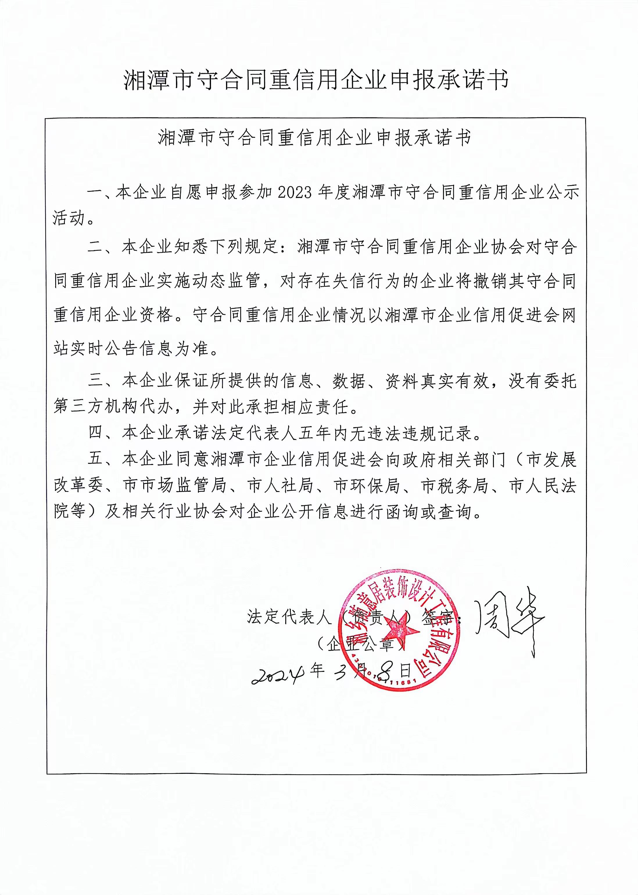 本企業(yè)根據《湘潭市守合同重信用企業(yè)申報規(guī)定》等編制 2023 年度企業(yè)信用報告書,并保證本報告書內容真實、準確、完整。
